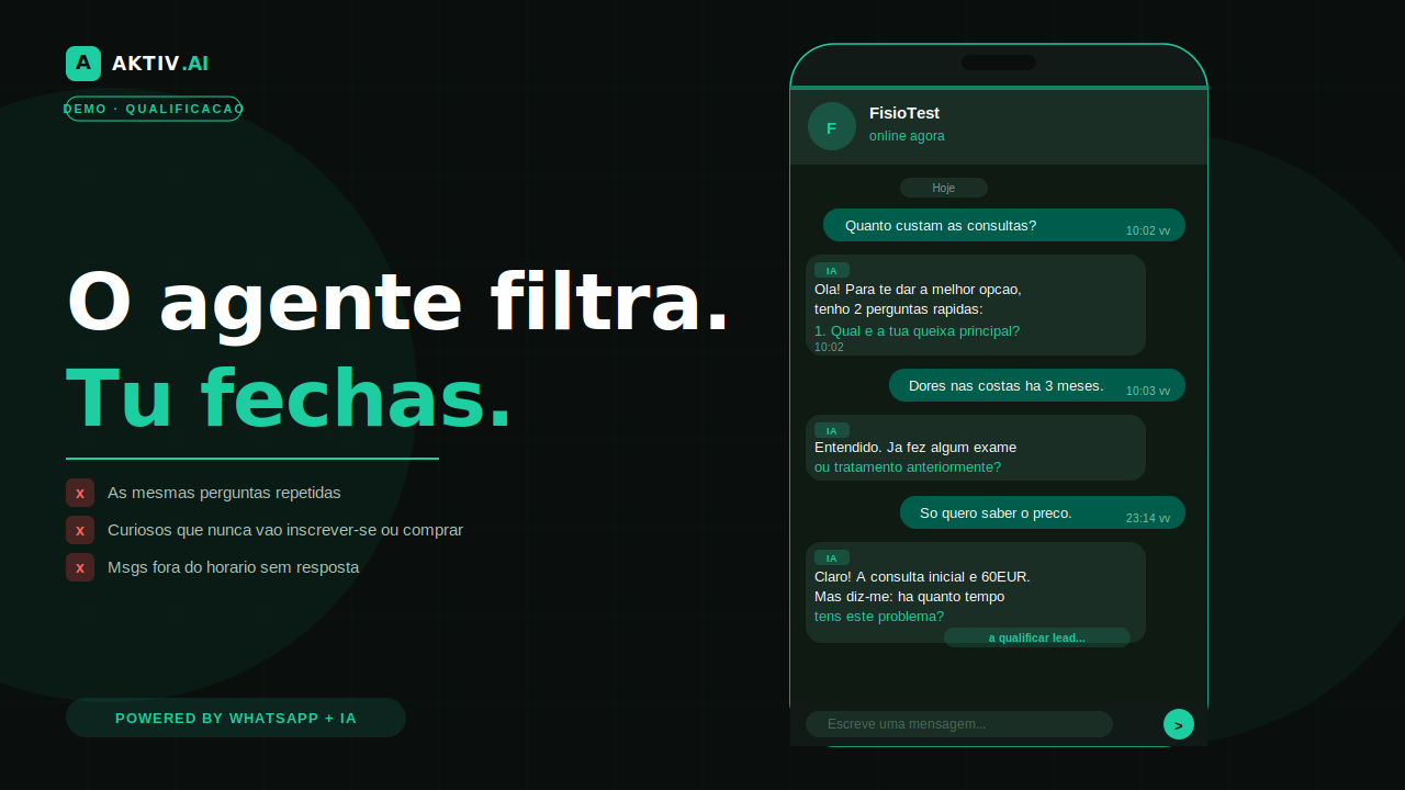 O agente recebe os pedidos de informação no WhatsApp, qualifica os contactos com algumas perguntas simples e encaminha apenas os leads prontos a avançar.